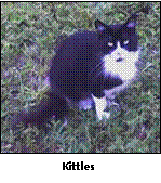 I also take care of a feral cat that showed up in my back yard. I call him Kittles. I feed him every morning...and he hisses at me every morning. I borrowed a humane trap from SPOT, caught him, had him neutered and released him back into my yard. Oooh, was he mad at me. He stayed away for almost two weeks, but now he is a fixture and often lounges under my window while I work at my desk. |